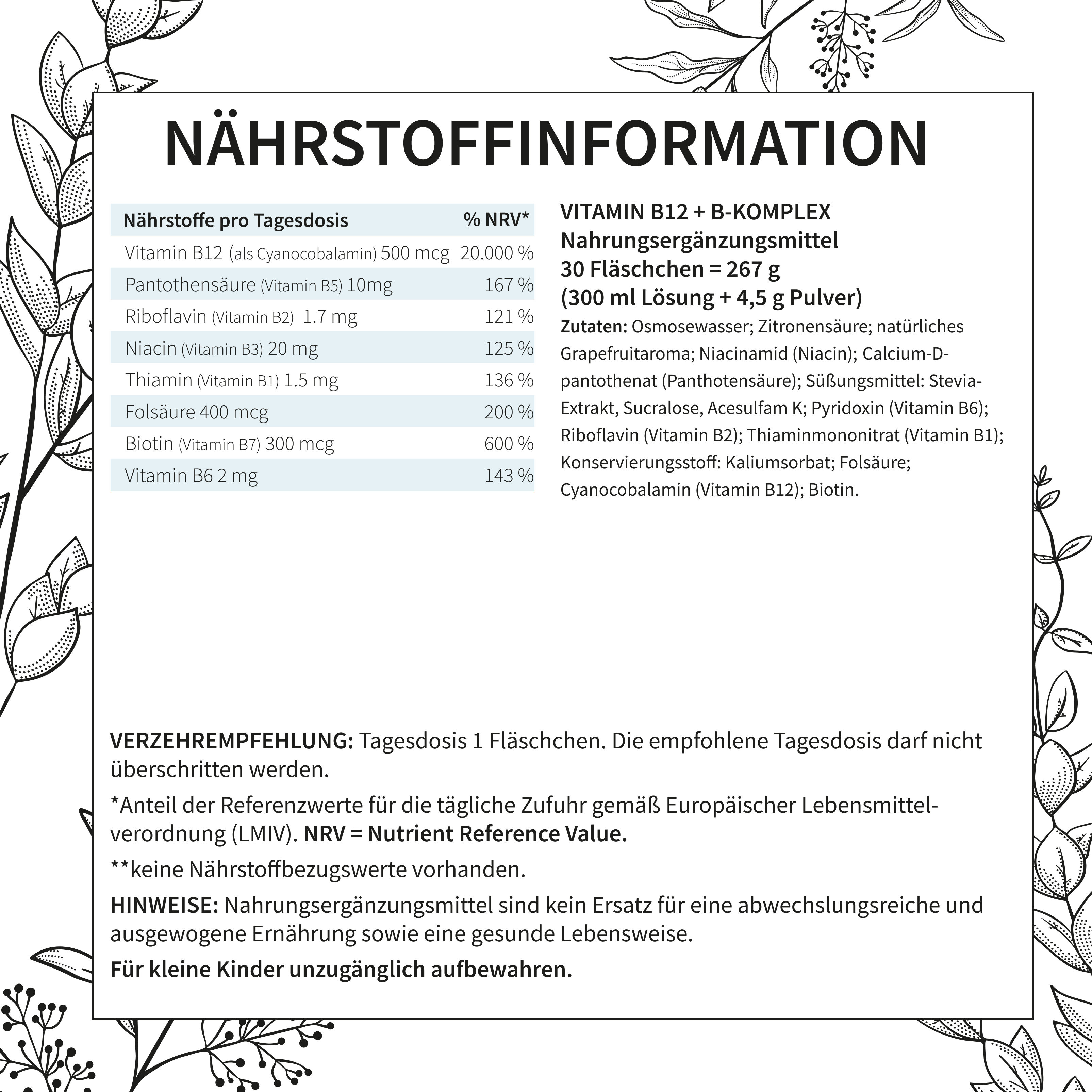 | Vitamin B12 (als Cyanocobalamin) | 500 mcg | 20.000% |