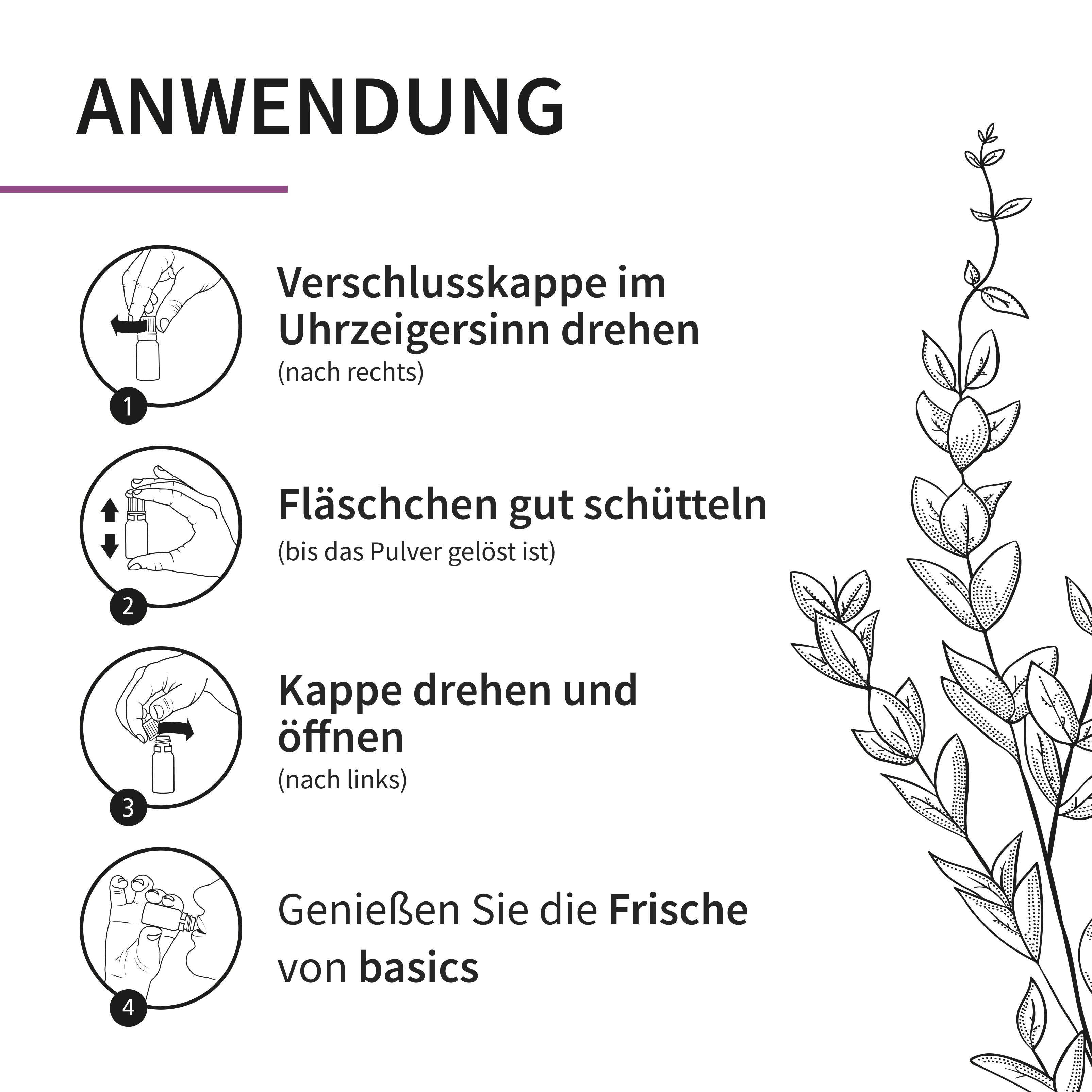 So einfach geht’s: Täglich ein Fläschchen (10 ml) trinken. Die empfohlene Tagesdosis darf nicht überschritten werden.