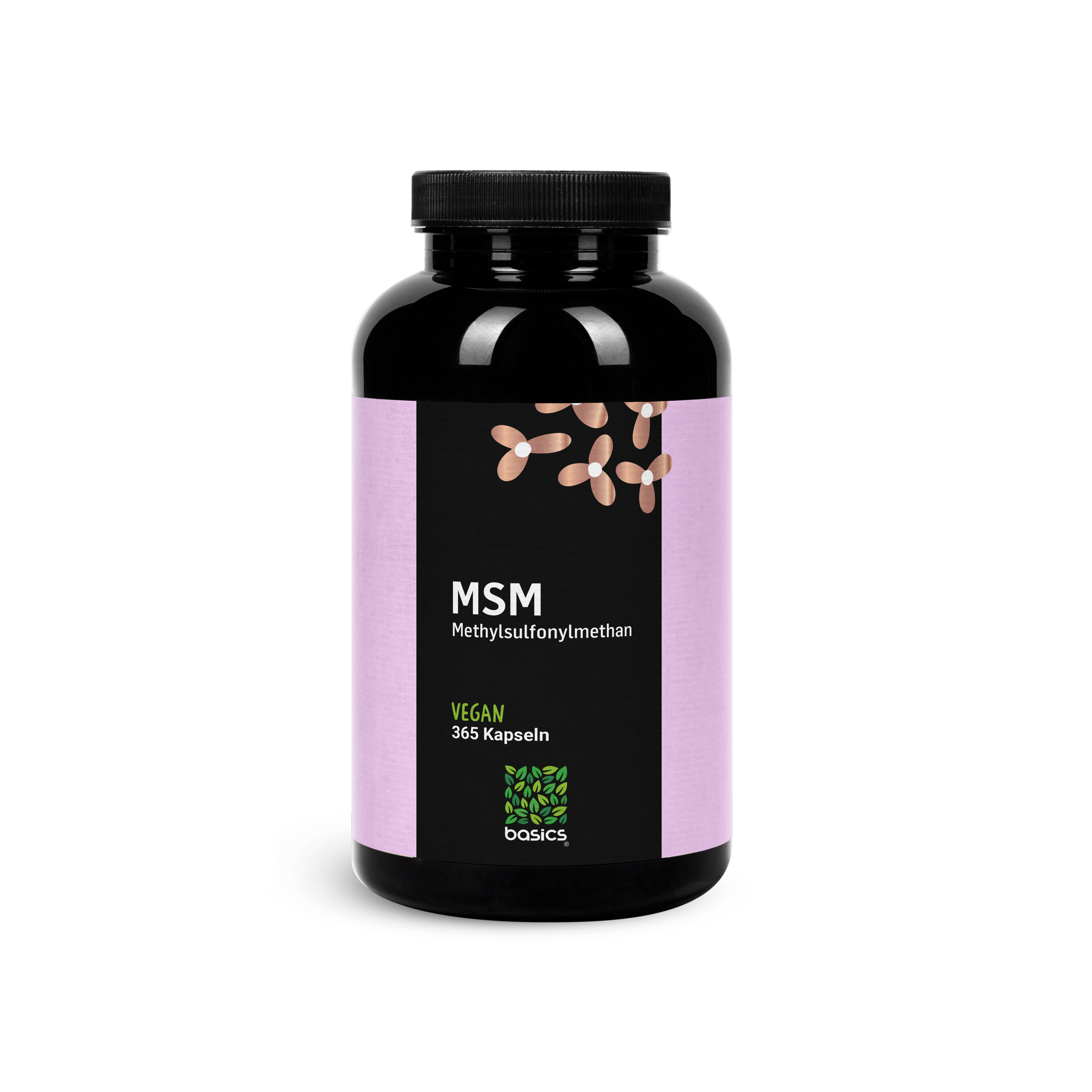 MSM (Methylsulfonylmethan) ist eine organische Schwefelverbindung und natürlicher Bestandteil vieler körpereigener Verbindungen. In deinem Körper sind schwefelhaltige Aminosäuren Bausteine von Proteinen wie Kollagen, das zum Beispiel in Knorpeln und Gelenken enthalten ist. Schwefelbrücken spielen eine wichtige Rolle für die Struktur von Eiweißen im menschlichen Körper.
