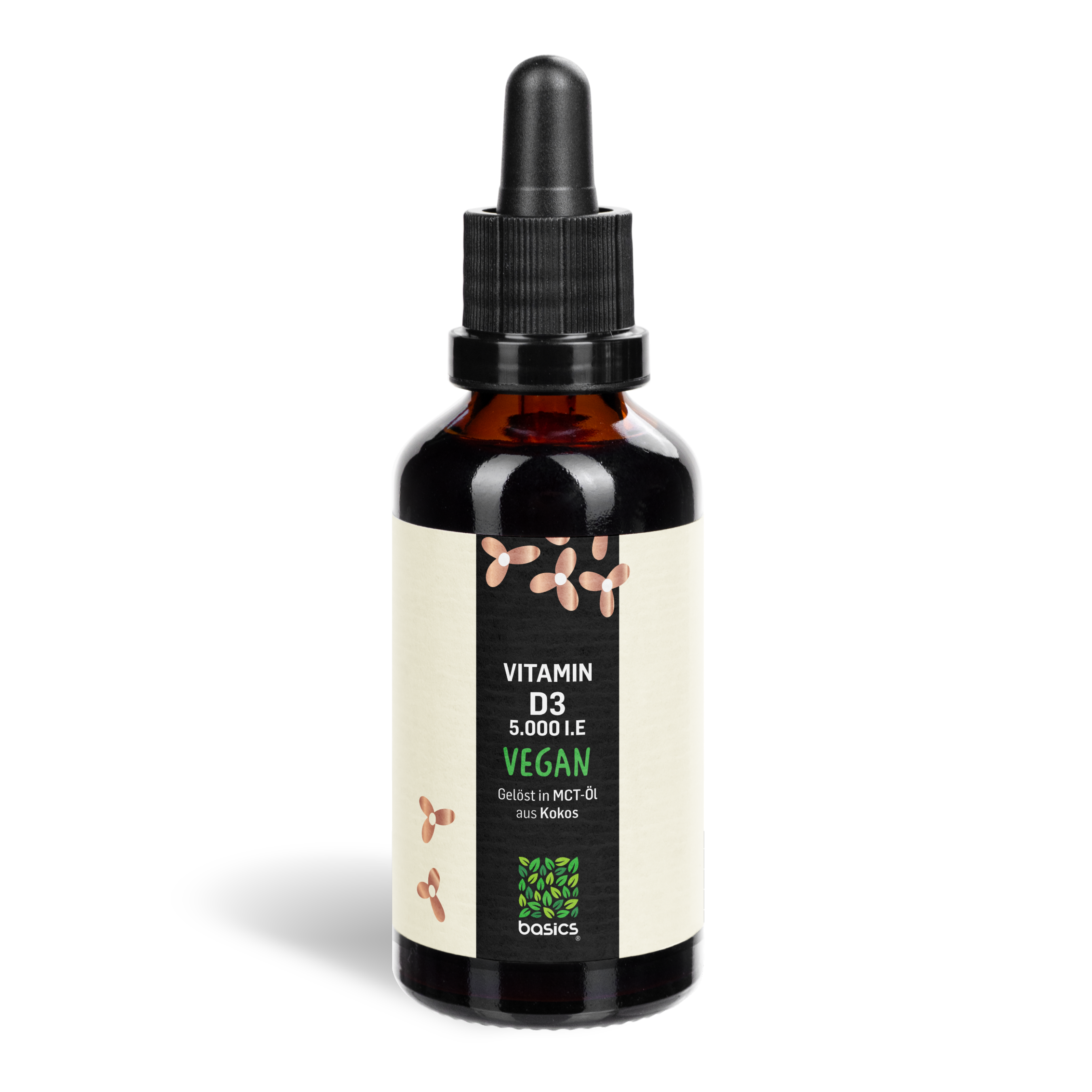 Unser Vitamin D3 wird aus Algen gewonnen und ist somit ideal für Veganer geeignet. Das von uns verwendete Vitamin D3 ist besonders bioverfügbar und in hochwertigem MCT-Kokosöl gelöst, um die Aufnahme in Ihren Körper zu optimieren. Die D3 Tropfen sind gluten- und laktosefrei und somit eine ausgezeichnete Wahl für alle, die auf unnötige Zusatzstoffe verzichten möchten.